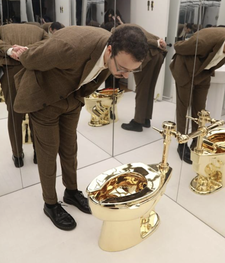 Altın klozete verilen astronomik fiyat başta ‘absürd’ gelebilir ama Cattelan tam da bu absürtlüğü eleştiriyor. Kapitalizmin gösterişini, sanat dünyasının snob duruşuna, paranın adeta kutsallaştığı bir dünyaya altın klozetle diss* atıyor…