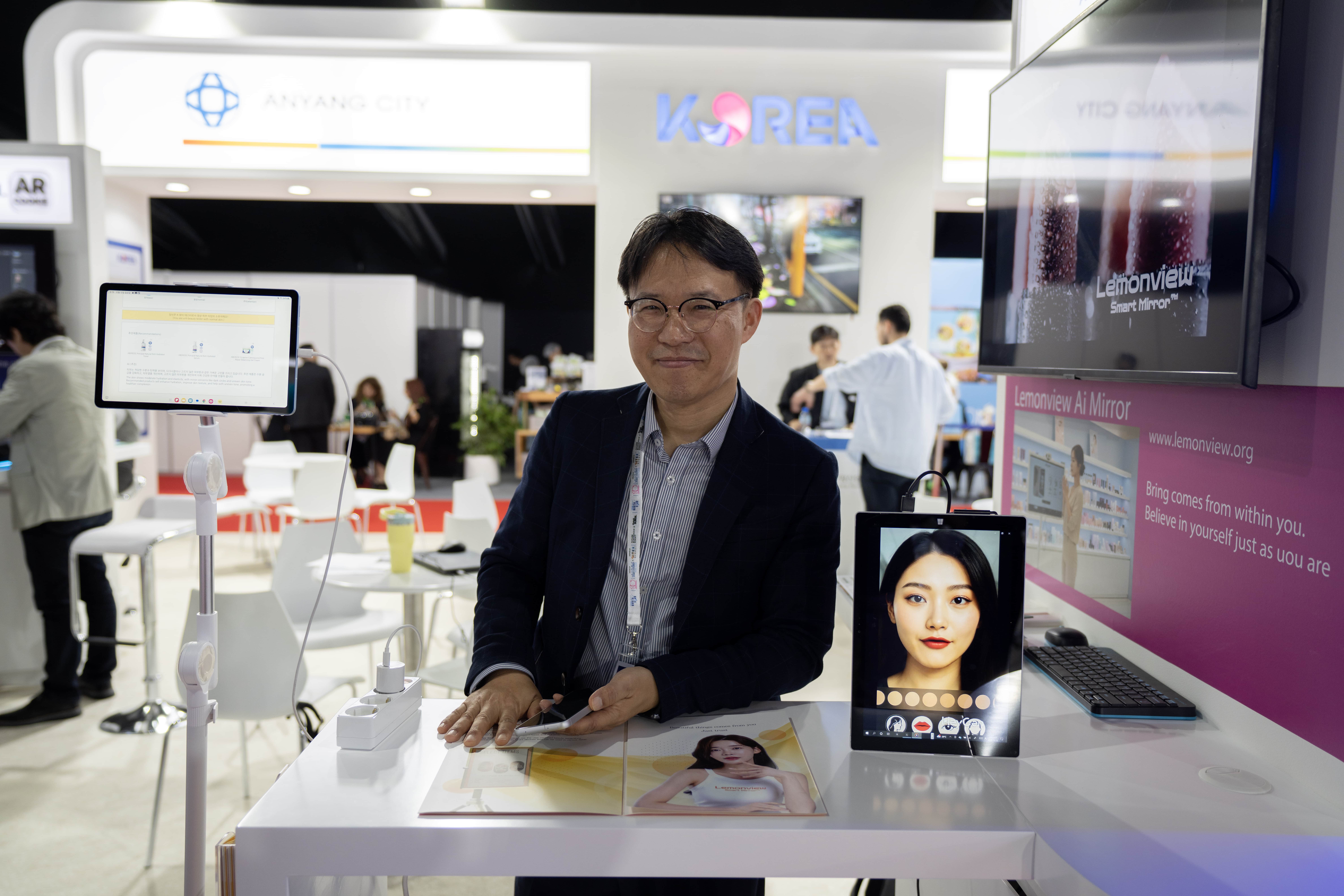 Lemonview CEO’su M.C. Yang, aynanın cilt analizi ve makyajı birleştiren bir teknoloji sunduğunu belirtti. Gerçek zamanlı çalışan sistem, cildi 16 farklı parametreye göre değerlendiriyor ve cilt yaşını da belirleyebiliyor.