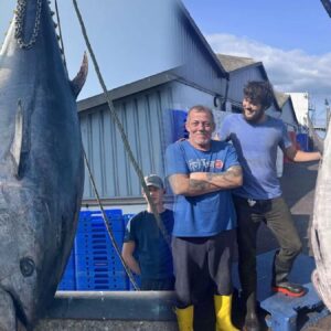 İngiltere’nin güney kıyılarında çalışan 59 yaşındaki balıkçı Jonathan Simper ve oğlu Harry, Devon’un Darmouth açıklarında avlanırken dev balığı ağlarında buldu. Yanlarındaki tayfa Wayne Adams ile birlikte balığı fark ettiklerinde onu tekrar denize bırakmayı planladılar. Ancak mavi yüzgeçli orkinosun çoktan öldüğünü gördüler.