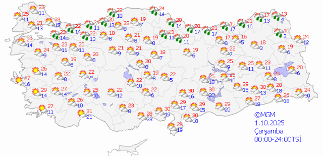1 EKİM ÇARŞAMBA HAVA DURUMU